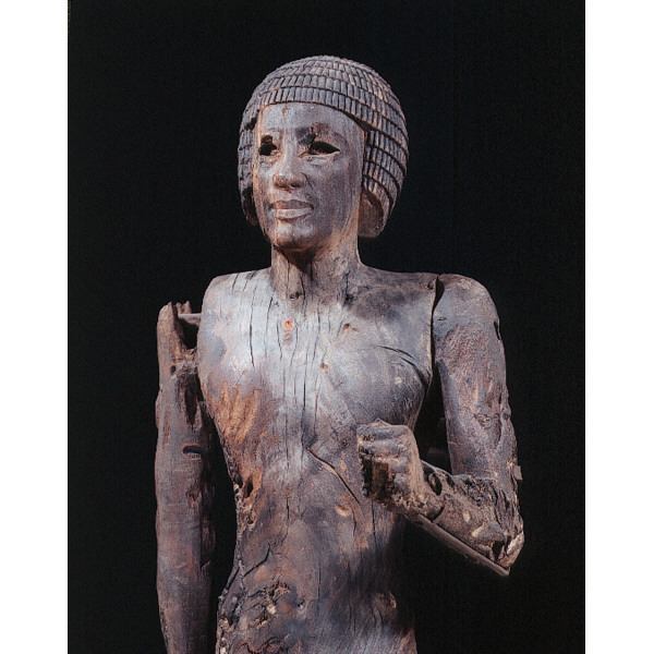 Description: Senedjemib Complex: wood statue from G 2385, room H, among stones in mouth of sloping passage of G 2378 A (quarter view proper left): 12-12-206 (= MFA 13.3466)
