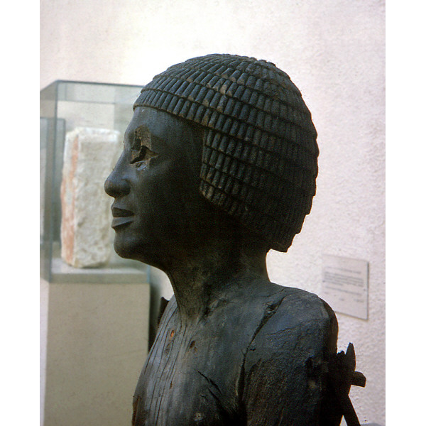 Description: Senedjemib Complex: wood statue from G 2385, room H, among stones in mouth of sloping passage of G 2378 A (detail, profile proper left): 12-12-206 (= MFA 13.3466)