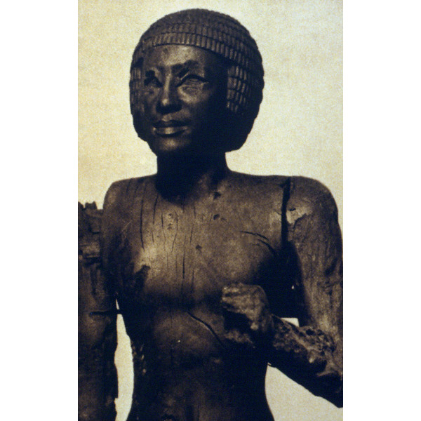 Description: Senedjemib Complex: wood statue from G 2385, room H, among stones in mouth of sloping passage of G 2378 A (quarter view proper left): 12-12-206 (= MFA 13.3466)