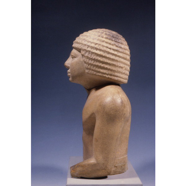 Head and upper torso of yellow limestone statue from G 4817 A (profile proper left): 15-12-11 (= MFA 30.830)