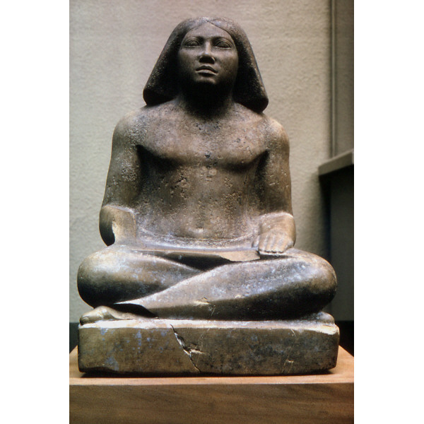 Limestone seated scribe statue of Khuenre from Menkaure quarry cemetery, MQ 1 = MQ 137 (front): 13-1-560 (= MFA 13.3140)