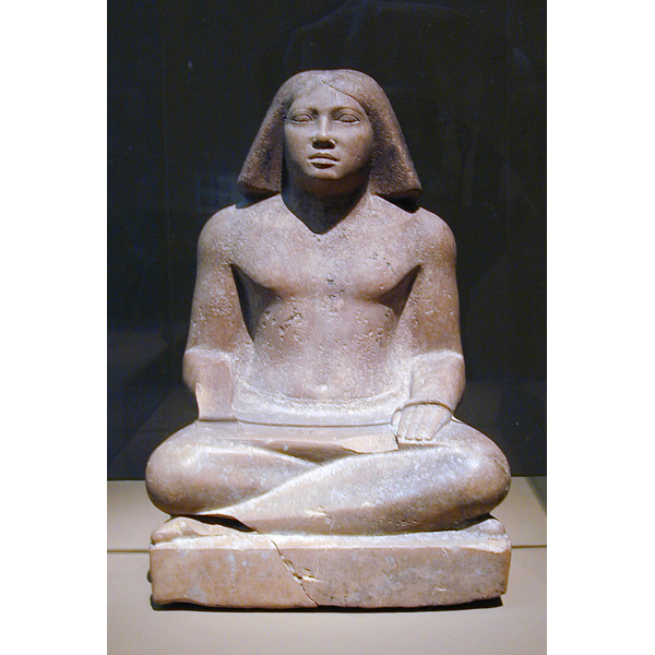 Limestone seated scribe statue of Khuenre from Menkaure quarry cemetery, MQ 1 = MQ 137 (front): 13-1-560 (= MFA 13.3140)