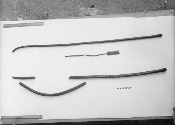 Description: Wood objects: top: wood staff and scepter from G 2011 A III: 36-4-33 (= MFA 37.1323, staff), 36-4-34 (= MFA 37.1318, scepter); bottom: wood staff from G 2420 S: 36-5-72