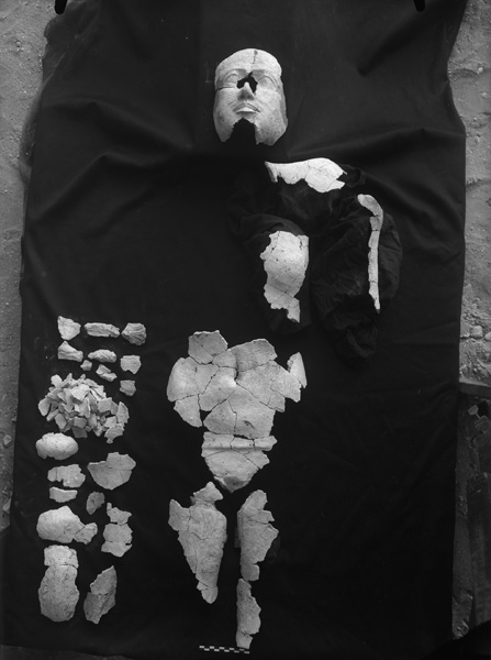 Fragments of plaster from over mummy (with all pieces) from G 2037b X: 38-6-37 + 38-8-5 (= MFA 39.828)