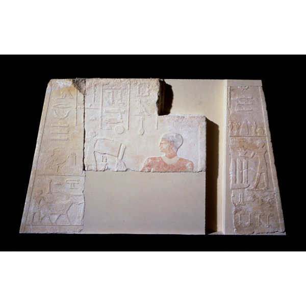 Limestone relief from G 2150, Kanefer, parts of N and S door jambs: 32-12-7 (= MFA 34.58) + 32-12-8 (= MFA 34.57)