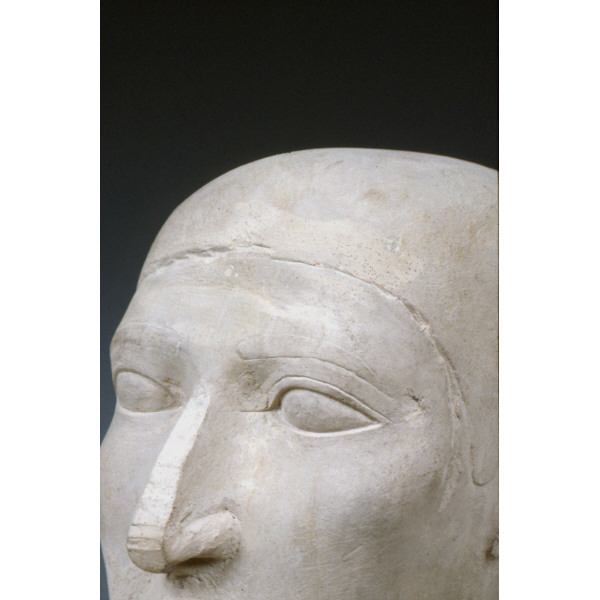 Limestone reserve head attributed to Nefer from G 2110 A (detail, quarter view proper left): MFA 06.1886