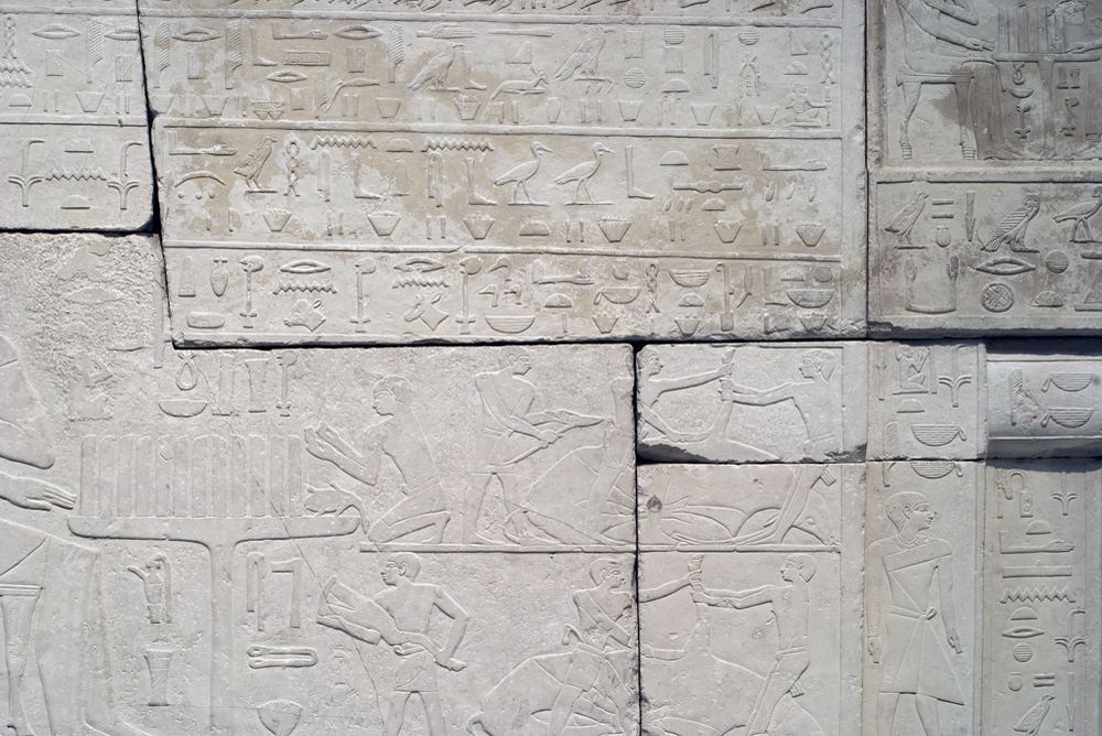 Description: Museum of Fine Arts, Boston, Egyptian Old Kingdom gallery 2B36: limestone reliefs from G 2041, Senenuka, chapel, W wall: MFA 07.1000 + MFA 07.1001 + MFA 07.1003 + MFA 07.1004 + MFA 07.1005
