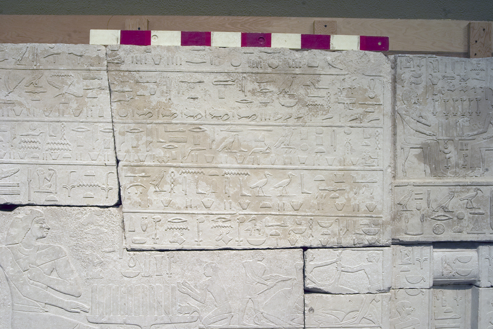 Description: Museum of Fine Arts, Boston, Egyptian Old Kingdom gallery 2B36: limestone reliefs from G 2041, Senenuka, chapel, W wall: MFA 07.1000 + MFA 07.1001 + MFA 07.1003 + MFA 07.1004 + MFA 07.1005