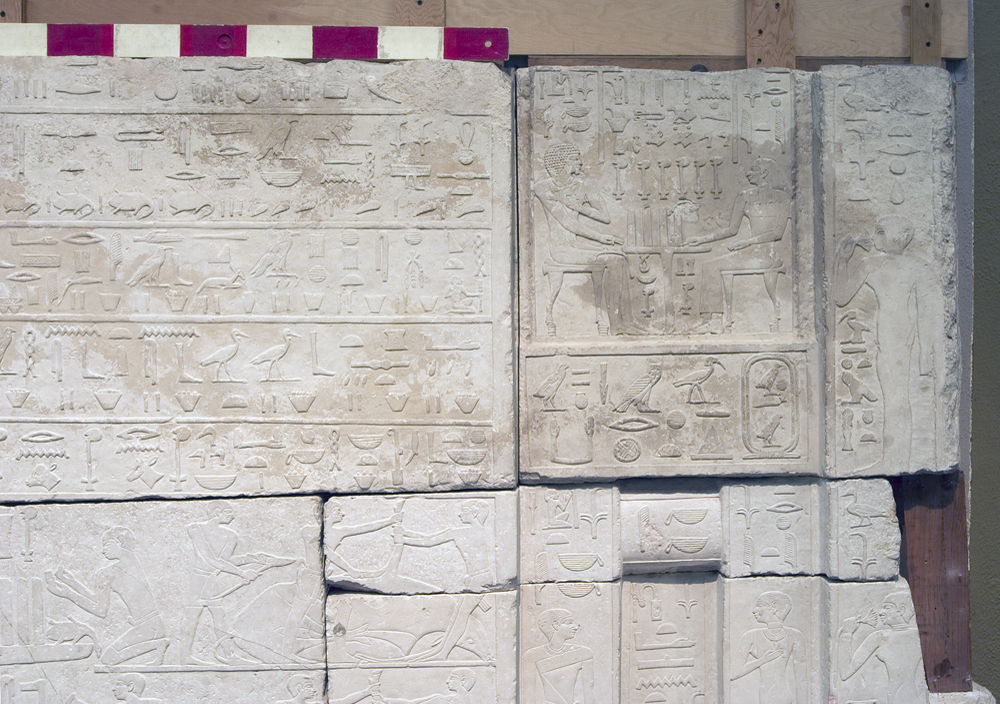 Description: Museum of Fine Arts, Boston, Egyptian Old Kingdom gallery 2B36: limestone reliefs from G 2041, Senenuka, chapel, W wall: MFA 07.1000 + MFA 07.1001 + MFA 07.1003 + MFA 07.1004 + MFA 07.1005