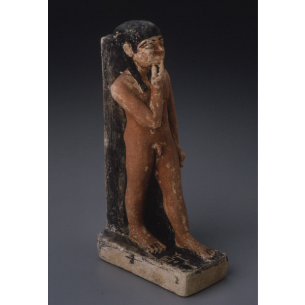 Painted limestone statue of Ptahneferti as a boy from G 2009, serdab (quarter view proper right): MFA 06.1881