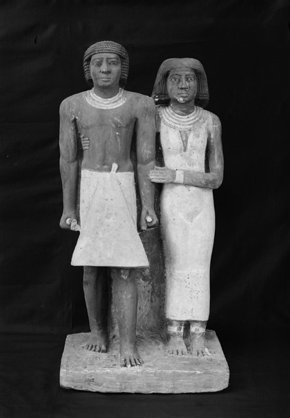 Description: Painted limestone standing pair statue of Ptahkhenui and his wife (name not preserved) from G 2004, serdab (front): MFA 06.1876. [Image also known as: B7360_NS]