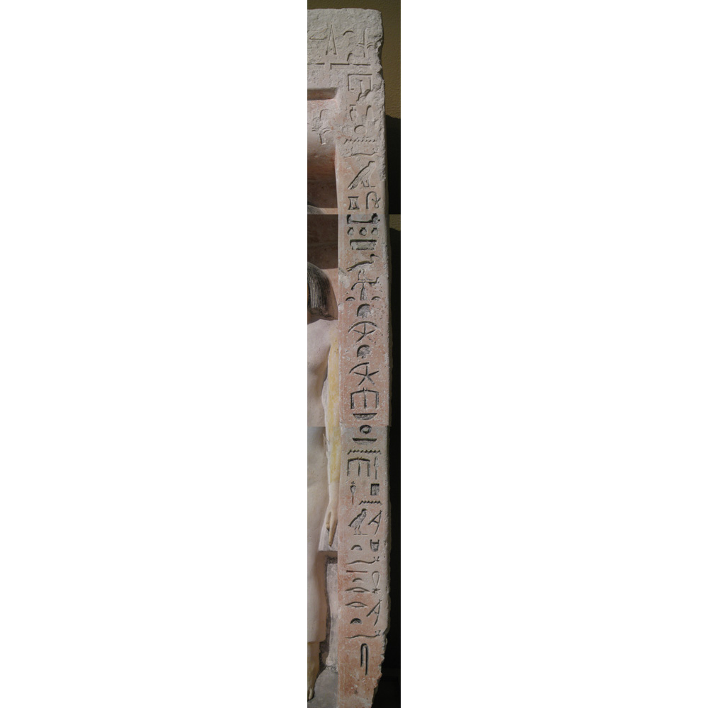 Description: Painted limestone pseudo-group statue depicting two figures of Penmeru, his wife Meretites, his son Seshemnefer, and his daughter Neferseshemes from G 2197, serdab S (text, niche face, proper left): MFA 12.1484
