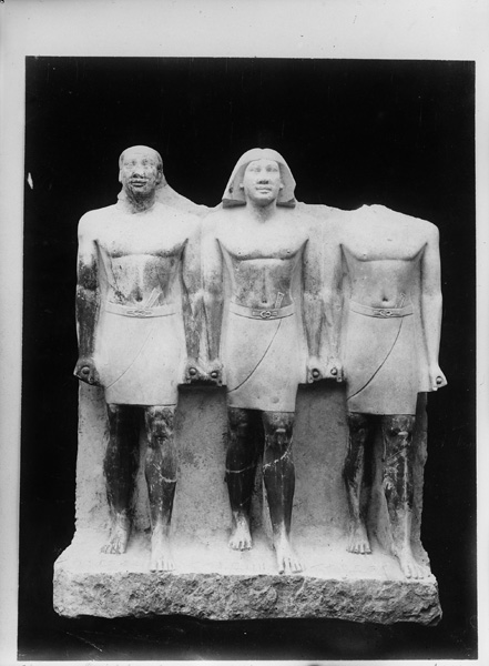 Limestone triad of [GLYPHS] Penmeru from G 2197, serdab N (front): MFA 12.1504 (rephotograph of A686)