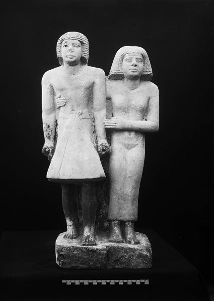 Uninscribed limestone standing pair statue (no. 3) from G 2415, serdab (front): MFA 21.2596
