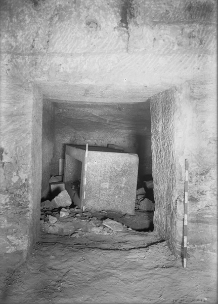 Cemetery G 7000: G 7410-7420: G 7410 B, chamber b, sarcophagus of Meresankh II (MFA 27.441a-b) in situ, looking S
