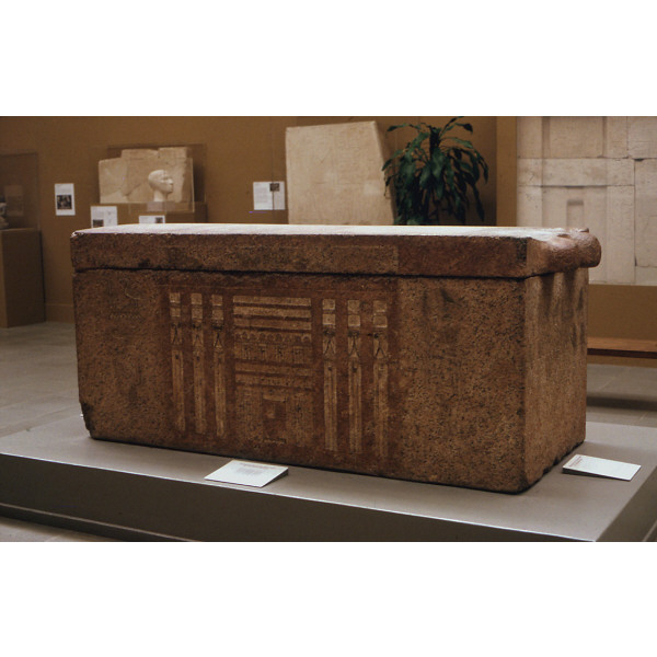 Museum of Fine Arts, Boston, Egyptian Old Kingdom gallery 2B36: red granite sarcophagus of Meresankh II from G 7410-7420: G 7410 B: MFA 27.441a-b