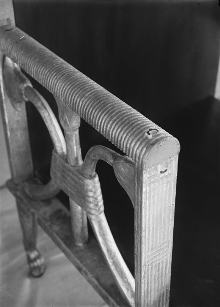 Description: G 7000 X, Hetepheres I, furniture: arm chair with openwork bound papyrus design (original reconstruction), arm: reconstruction = Cairo JE 53263, reproduction = MFA 38.957